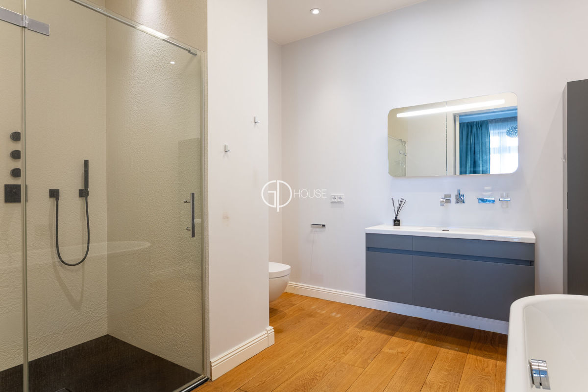 Mieszkanie o powierzchni 150m2. W mieszkaniu zainstalowana jest klimatyzację w każdym pokoju, system inteligentnego domu. Wysoki standard wykończenia.