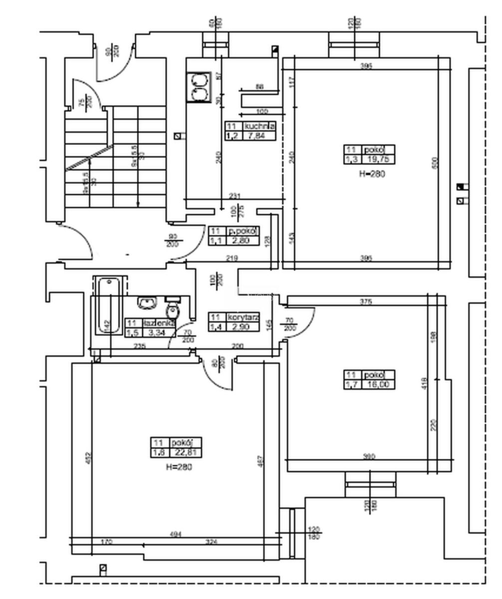 Mieszkanie składa się z dwóch oddzielnych sypialni, salonu, kuchni, łazienki oraz przedpokoju. Mieszkanie jest do remontu, co daje dużą swobodę aranżacyjną.