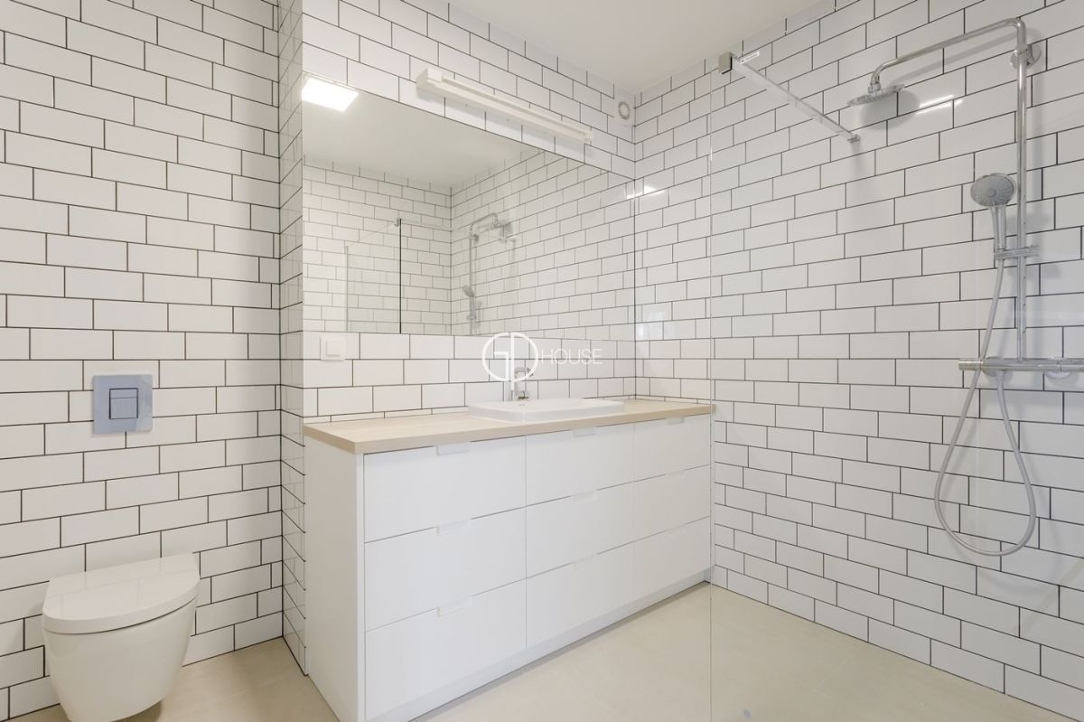 The flat is located on a closed estate in Sadyba, Limanowskiego street . The residence is with 24/h security. Very quiet, landscaped and green estate. Very good location few minutes on foot to international schools in Sadyba and also to Sadyba Best Mall. The flat is on the 4th floor with an area of 163 m2 has two terraces of 25m2 and 16m2. It is after general renovation and has been finished to a high standard. The flat consists of: a hall, living room with semi-opened kitchen (total 48,5m2), laundry room (with washer and dryer), 3 bedrooms (25m2, 20m2 and 13m2), 3 bathrooms (2 with shower and 1 with bahtube and shower). Basement of approximately 15m2. Two parking spaces available: one in the underground garage, the other on the estate. Flat unfurnished. Rent + administrative rent 2400 PLN/m. + electricity and internet.