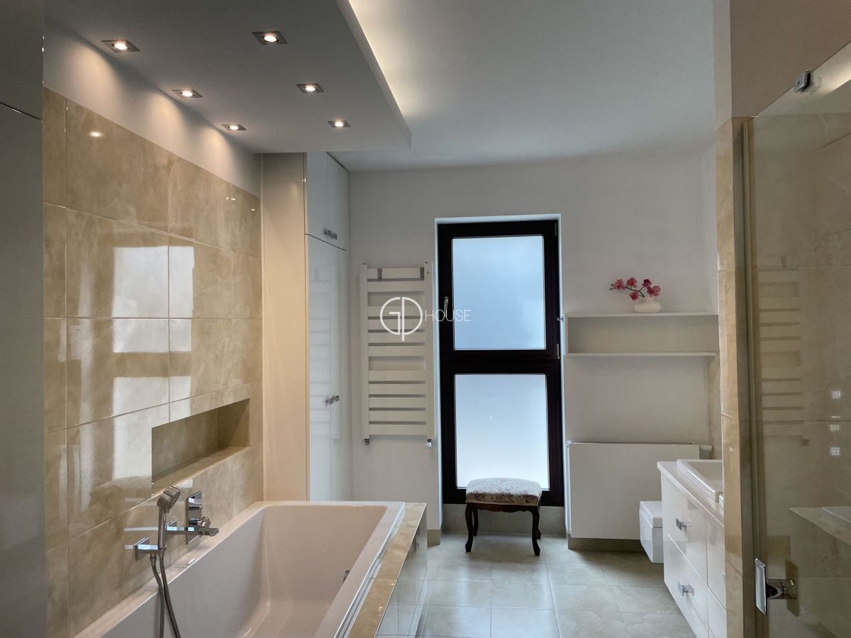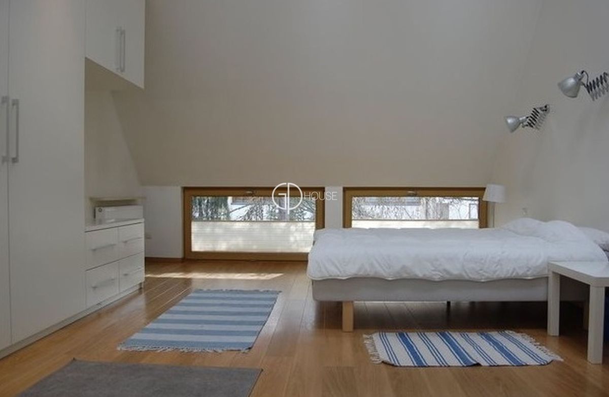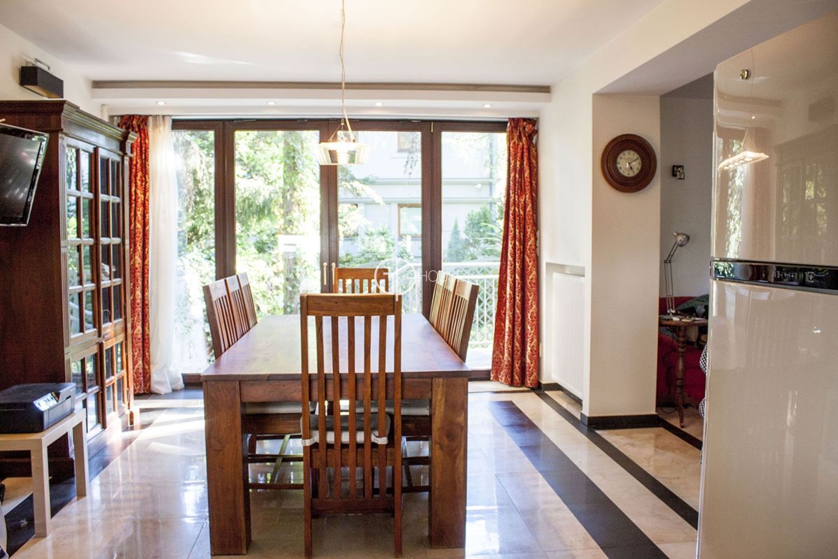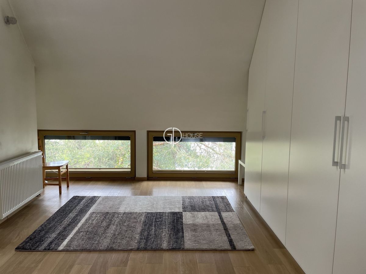 Modern and spacious house located in the old part of Sadyba, in the heart of the Czerniakowskie Lake Nature Reserve. This part of Sadyba enjoys a wild natural environment and a pleasant atmosphere, while offering easy access to the centre of Warsaw and the nearby airport. Nearby tennis courts, British and French schools and the Sadyba Mall shopping centre.