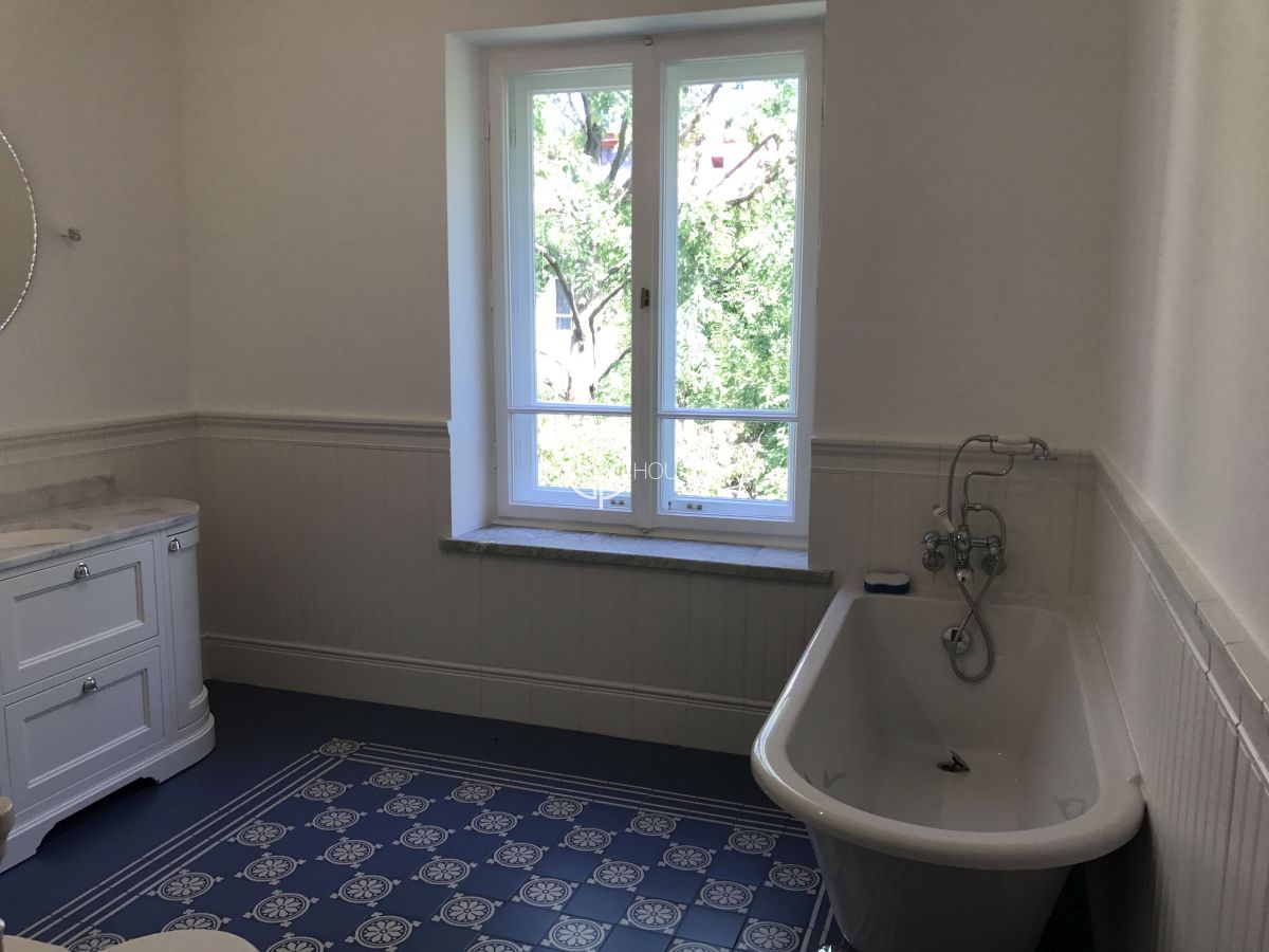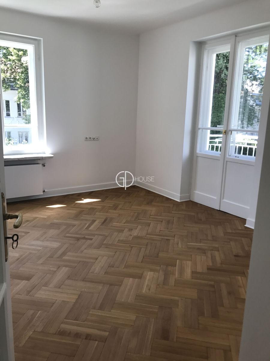 A unique, pre-war villa located in the heart of Warsaw in a residential area - Kolonia Staszica. The neighbourhood still has the charm of pre-war architecture. The house has been completely renovated and finished to a very high standard, preserving the atmosphere of a pre-war villa (preserved staves, restored windows, preserved staircase). On the ground floor there are: a hall with built-in wardrobes, a guest toilet, a fully equipped kitchen, a representative living room connected with a dining room (with an exit to the terrace). On the first floor there are: a master bedroom with a bathroom and a dressing room, 2 additional bedrooms (including one with an exit to the balcony), a bathroom and a large dressing room. In the attic: a large open space, a bathroom. In the basement: a room with window with small kitchen and bathroom, large room, wine cellar, garage for 1 car. An unquestionable advantage is the landscaped garden surrounding the house. Very good access to public transport (tram, bus), as well as the metro station Politechnika is not far away. Unique offer!!!