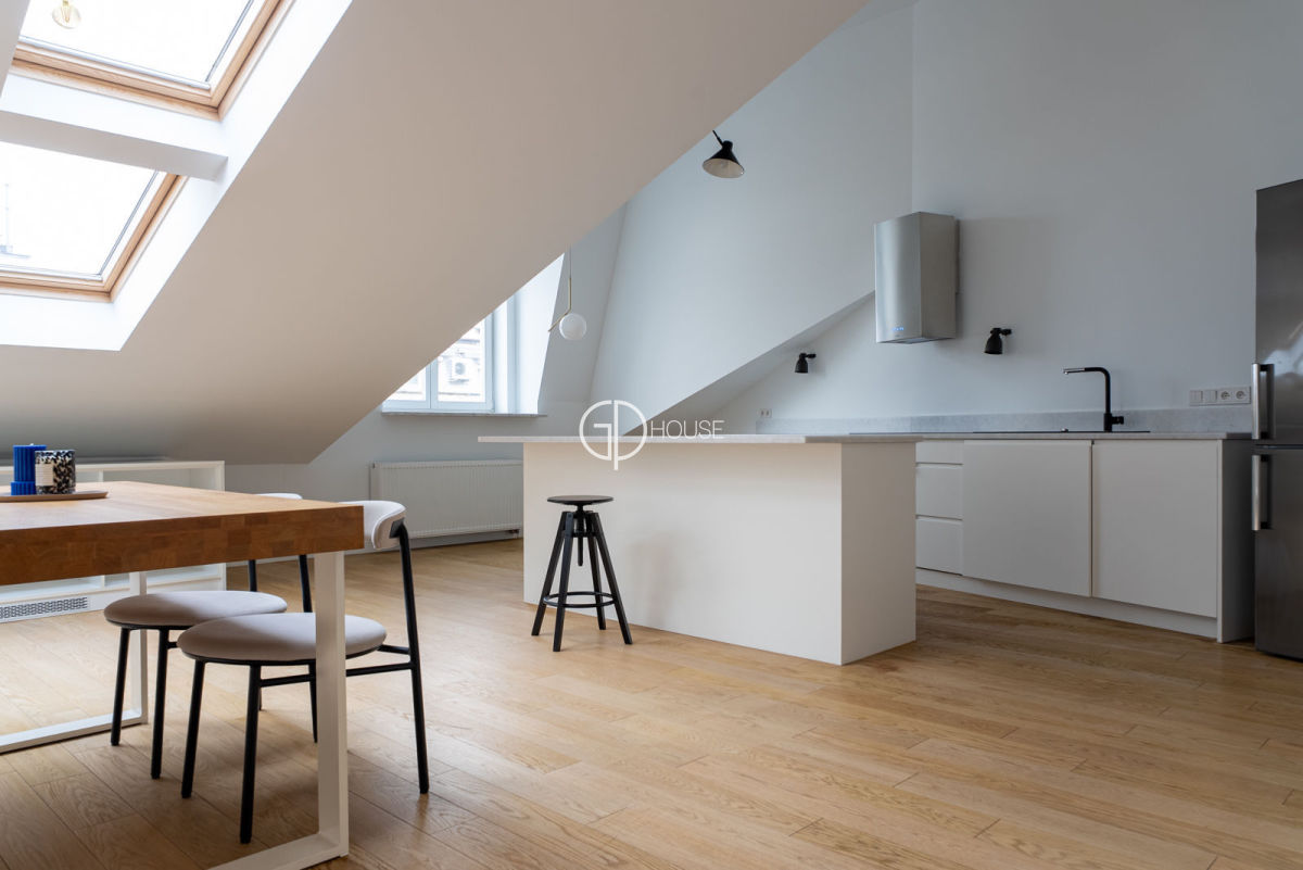 Spacious, three-room apartment with a floor area of 156 m located on the top floor (fourth) of an elegant old building with a lift on Wiejska Street. The highlight of the apartment is the living room, which is over 70 m in size and includes a kitchen. There are two bathrooms, one with a bathtub and the other with a shower cubicle.Both bedrooms are located on the quiet patio side, the larger one to the west and the smaller one to the north.The flat is partially furnished. It is possible to add or remove furniture according to individual needs.Close to numerous restaurants, cafés, shops and services, as well as many green spaces.A very attractive offer in a prestigious location.