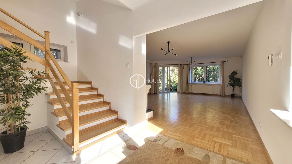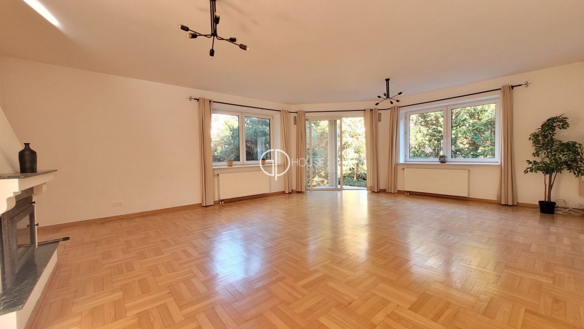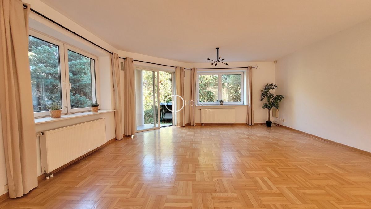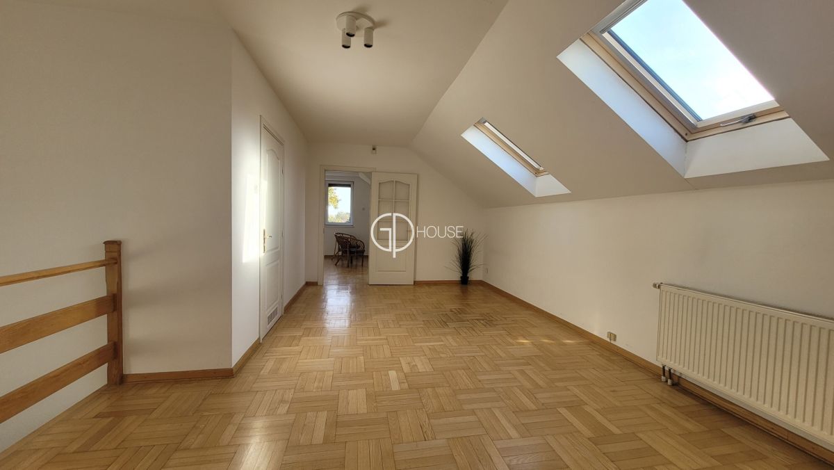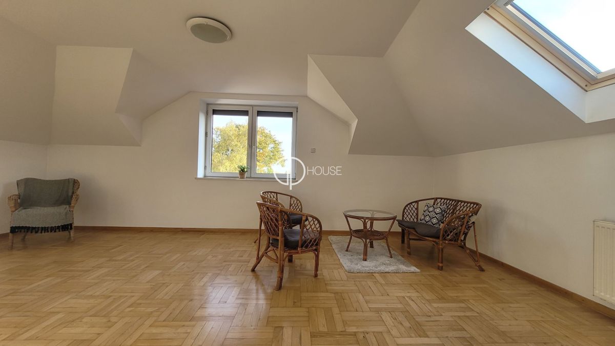 Semi-detached house located in the old part of Wilanów . Close by the Wilanów castle and its park, a few minutes by car from the international schools of Sadyba and Sadyba Best Mall. The house comprises on the groudfloor : hall with wall cupboard, a separated kitchen, a large living room (50m2) with fire place and access to the garden, toilets, laundry. 1rst floor : master bedroom with its own bathroom (bath and shower) toilets and wall cupboards, 2 other bedrooms, bathroom (bath and shower). 2nd floor : 1 bedroom with wall cupboards, an openspace, a large room (bedroom or playroom), bathroom (bath and shower). Basement : boiler room. Garage for 2 cars. Luminous and very spacious house, ideal for a large family.