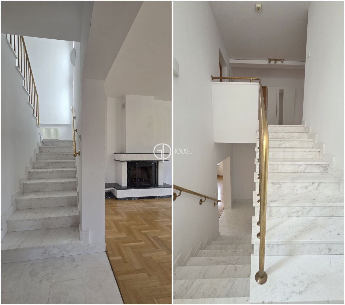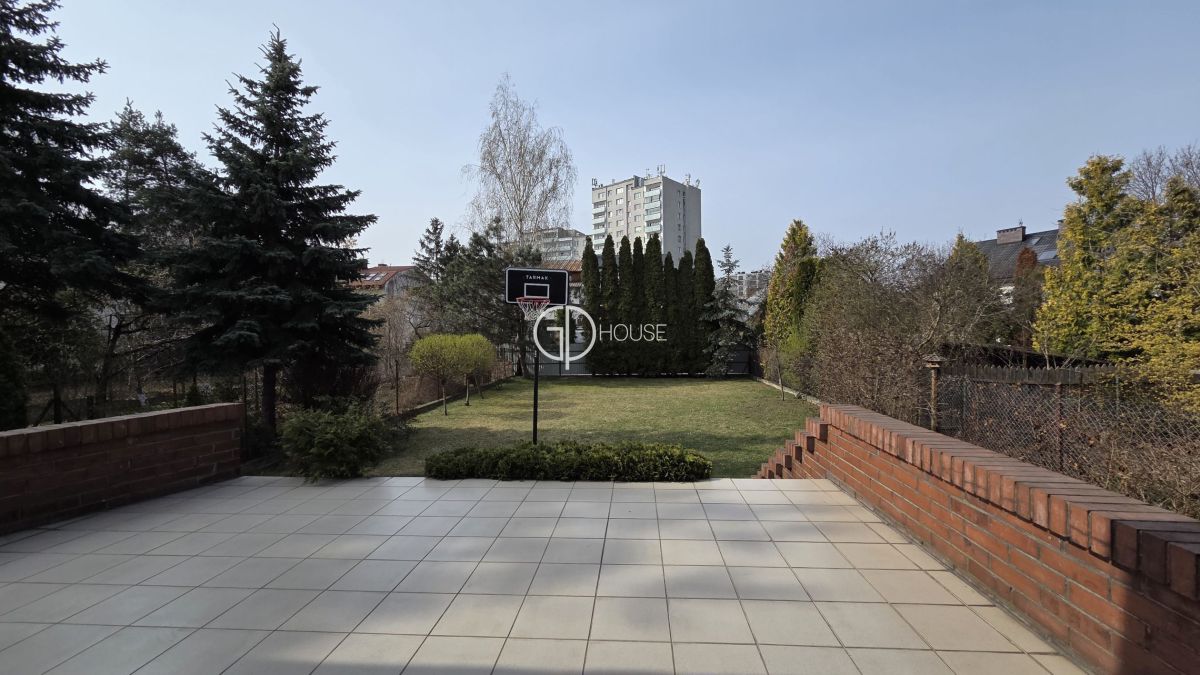 Detached house located in the area of Wilanów.The house is composed of a hall, a large room 50sq.m., direct accesss to the terrace and to the garden, opened kitchen on the diningroom, bathroom, big warderobe. On the 1rst floor: 4 rooms (one with mezzanine), bathroom. Basement: 50sq.m room with fire place, 2 storage rooms, bathroom, sauna, laundry, garage for 1 car and a covered place outside for a second car. Very nice garden of 600sq.m.
