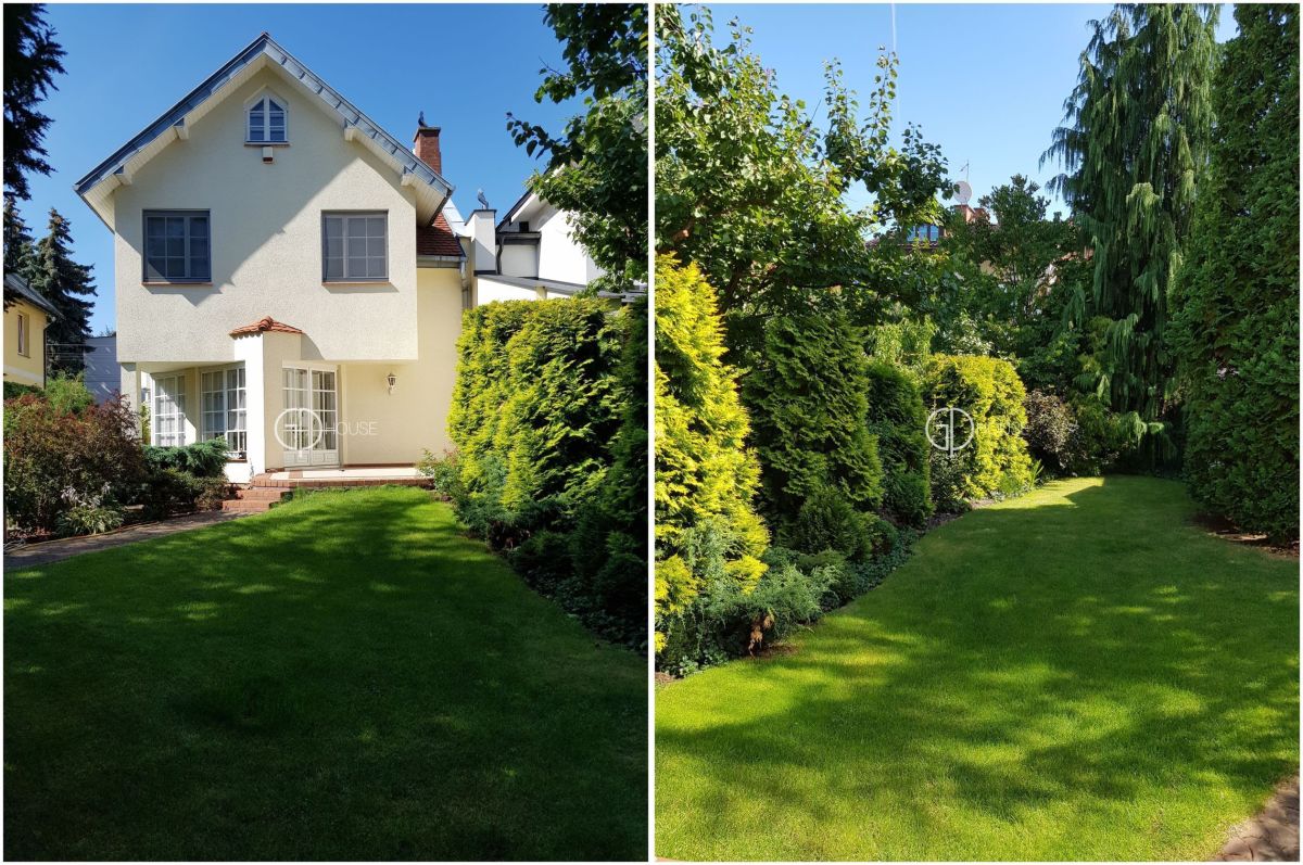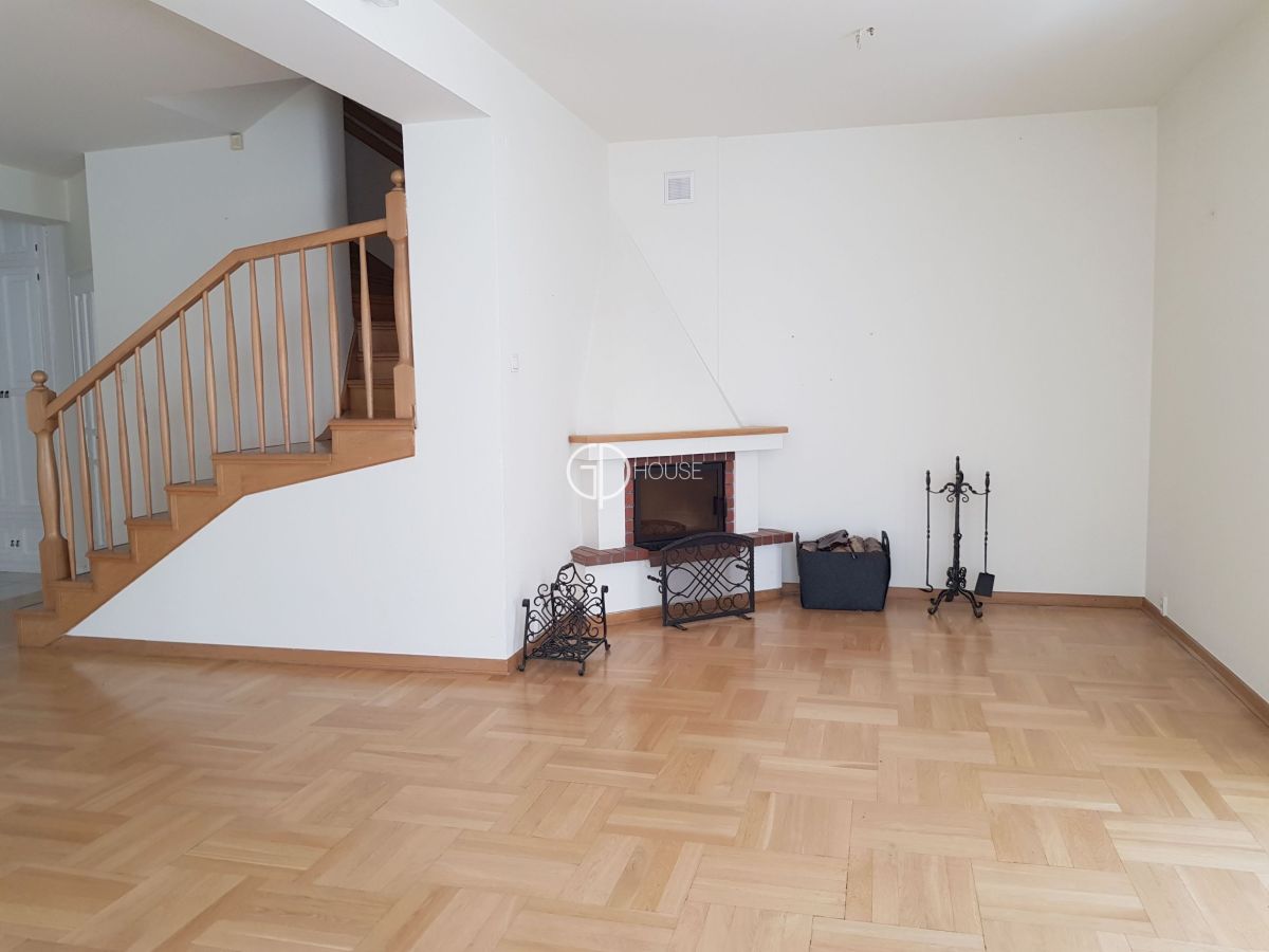 Semi-detached house located in the area of Wilanów, close to the palace and its park. The house comprises a hall with wall cupbaords, a large livingroom with fire place, access to a terrace and to the garden, a separated kitchen, a pantry, toilets. On the first floor : 3 bedrooms, bathroom (bath and shower). On the second floor a bedroom and bathroom (shower). Basement : sauna and shower, storage, boiler room. Independant garage for car and possibility to park several cars inside the proprerty. Very nice and pleasant garden, quiet area.
