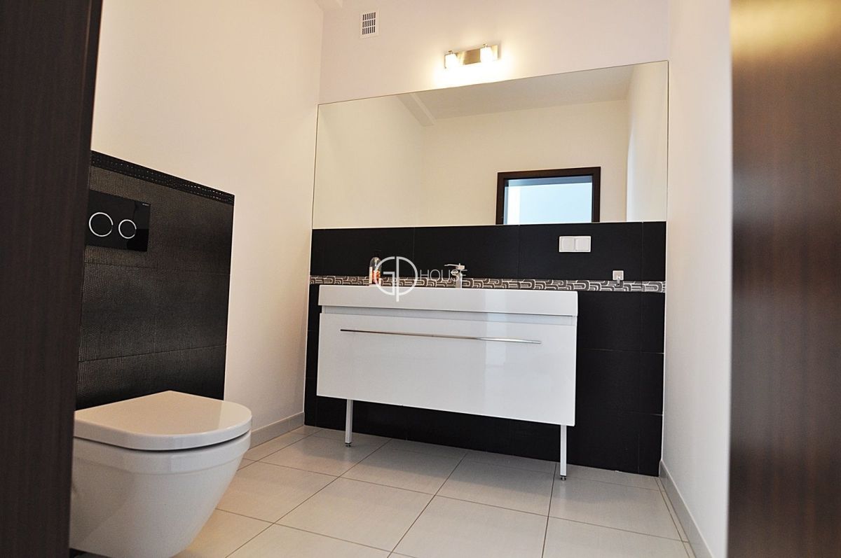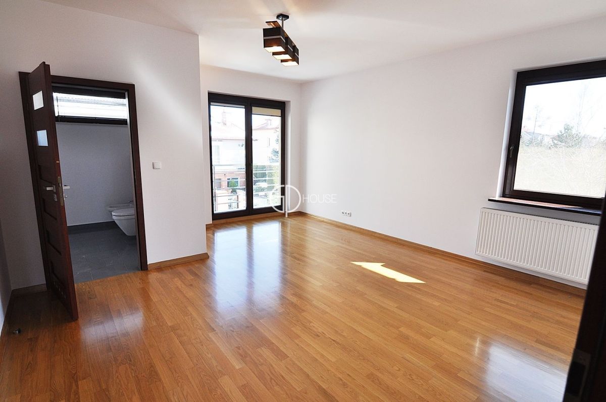 Modern house built in 2011 located in the old part of the area of Wilanów, 5 minutes from the internationals schools of Sadyba . Lay out: on the ground floor, hall, large kitchen around 20 sqm full equiped and furnished with dining place, large living room around 75 sqm with direct acceess to the garden, study room, toilets for guest and direct access to the garage from the house. On the first floor: 4 large bedrooms, 3 bathrooms, one wardrobe. On the second floor: 1 open space or guest room with bathroom. On the basement: large laundry, and lots of storages. Garage for 2 cars.