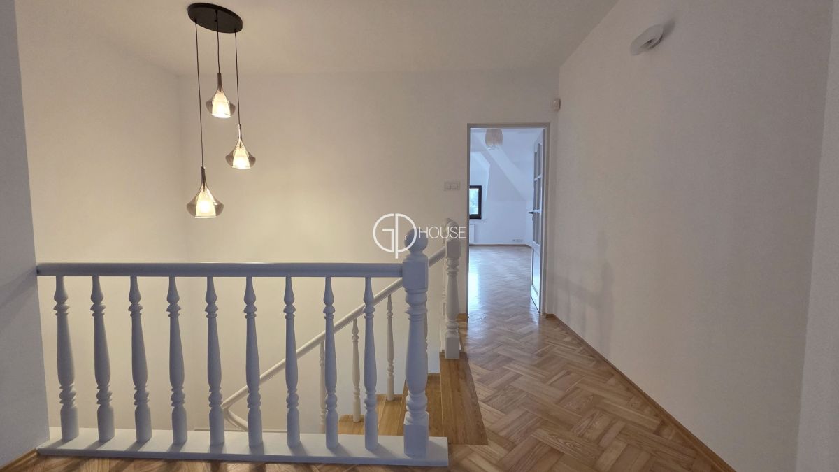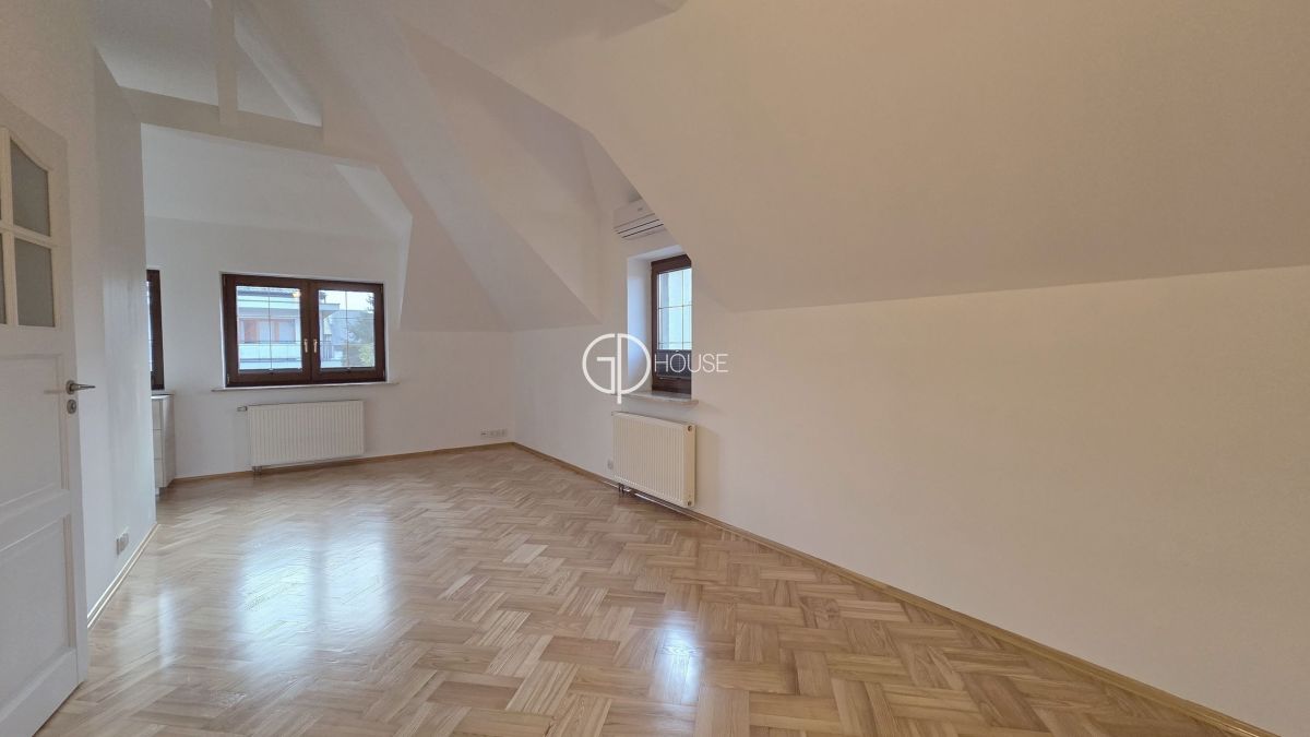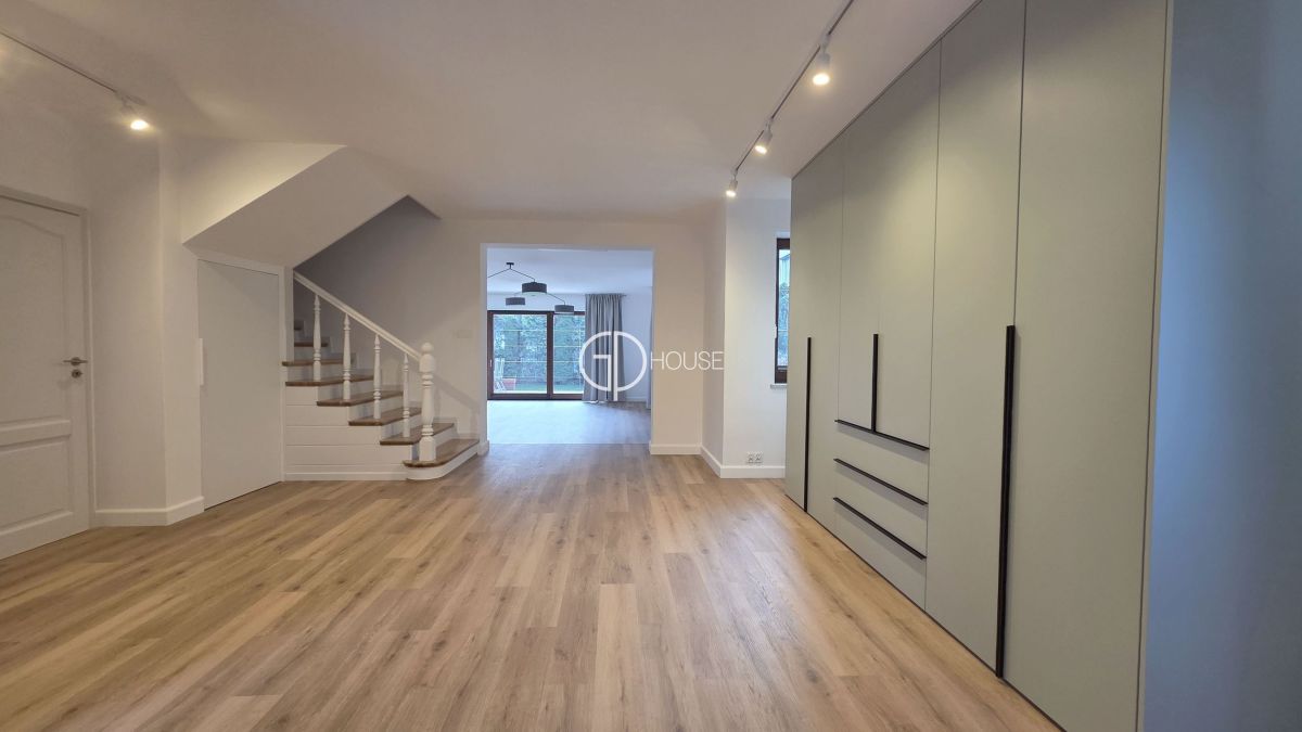 Maison individuellespacieuse et renovee situee dans le quartier du vieux Wilanów. Au rez-de-chaussée se trouvent : un hall avec dressing (2 grandes armoires), un salon spacieux avec cheminée (accès direct à la terrasse et au jardin), une grande cuisine, une salle à manger, des toilettes invités, un garage pour 1 oiture et la lingerie. Au premier étage : la chambre principale avec sa propre salle de bains et son dressing, une autre chambre avec sa salle de bains, 2 chambres supplémentaires et une salle de bains. (Deux chambres sont équipées de la climatisation). Au 2ieme grand open space en sous-pente. Possibilite de garer 2 voitures dans la propriete un abris a ete prevu a cet effet. Excellente localisation dans un quartier residentiel calme a proximite du chateau de Wilanów et de son parc, piscine, centre de sport, pistes cyclables et a 5 minutes des ecoles internationales et des commerces.